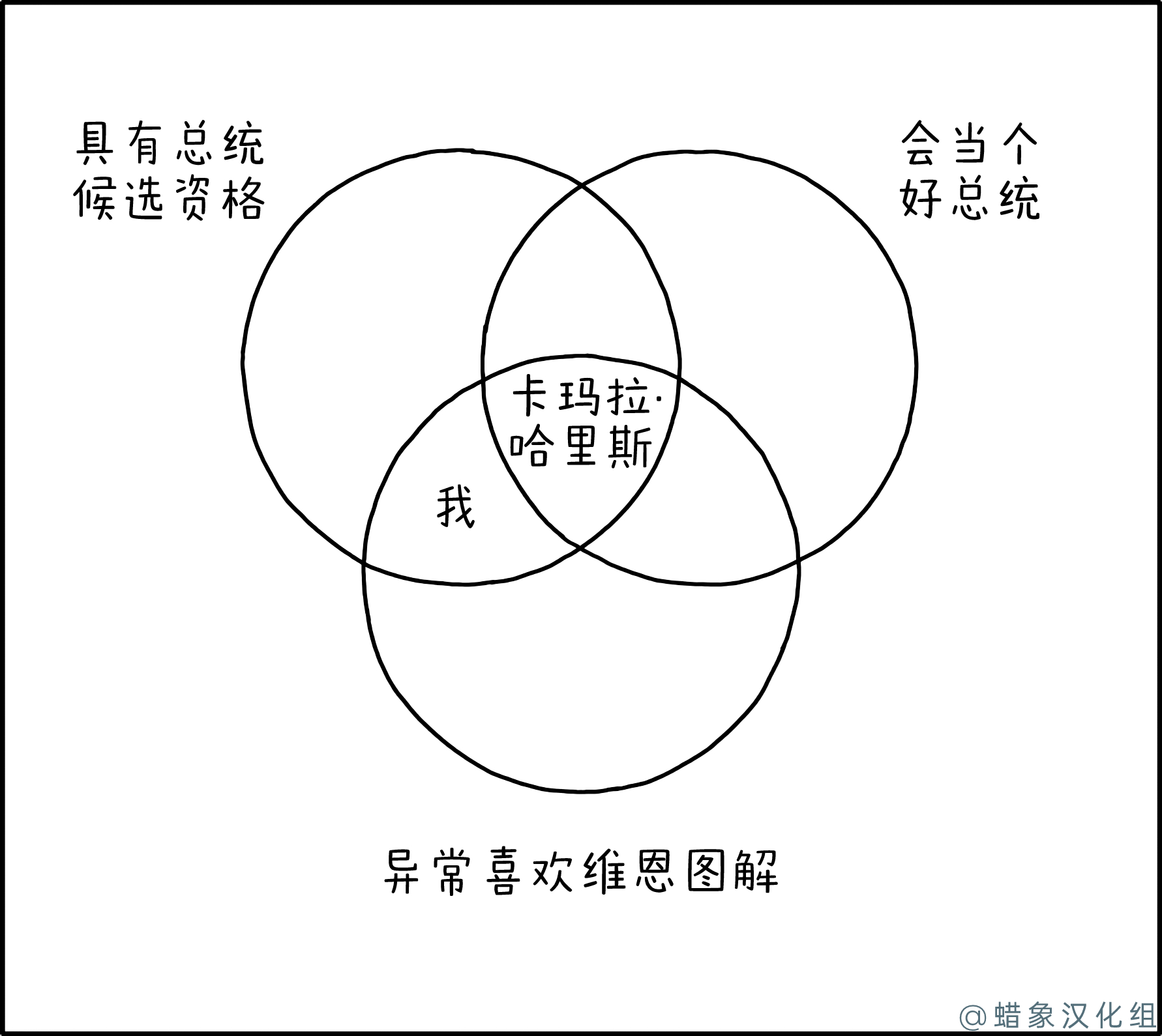 很难想象还有比“我喜欢维恩图,我真的很喜欢,我喜欢维恩图,就是喜欢那三个圈”更能精准针对我的政治修辞了。