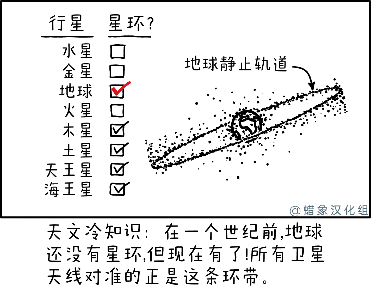 如果不清楚自己在地球上的具体位置,观察卫星天线的倾斜角度能帮你锁定纬度。如果有些天线直指天空,那你很可能在赤道附近——刚好处于这条“地球环”的正下方。