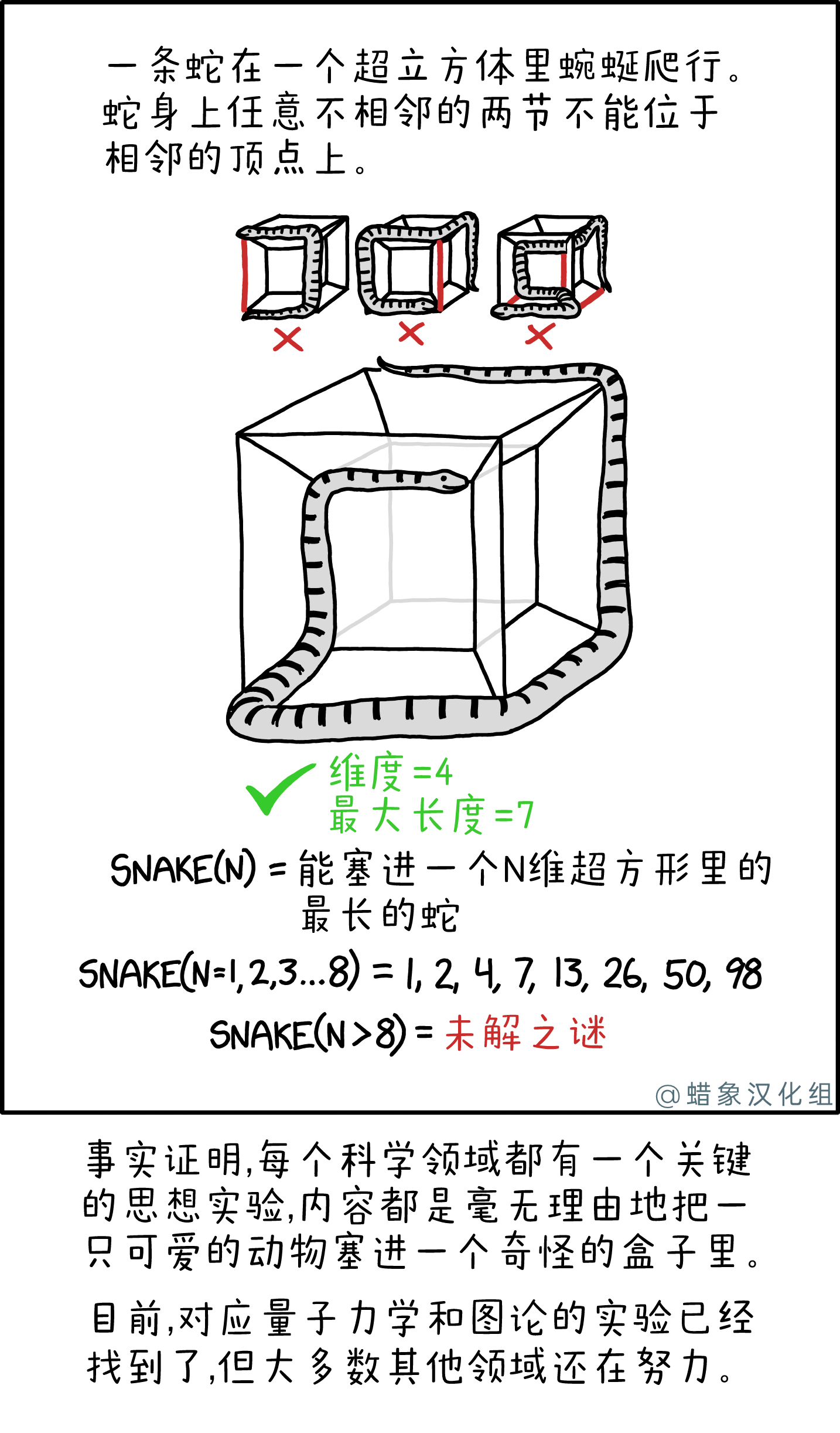 有人看到化学系的研究生正试图把校园里的松鼠骗进洗衣篮,希望能激发灵感。 译注: 猜想的名字就叫 Snake-in-the-box 松鼠骗进洗衣篮可能指内嵌富勒烯。